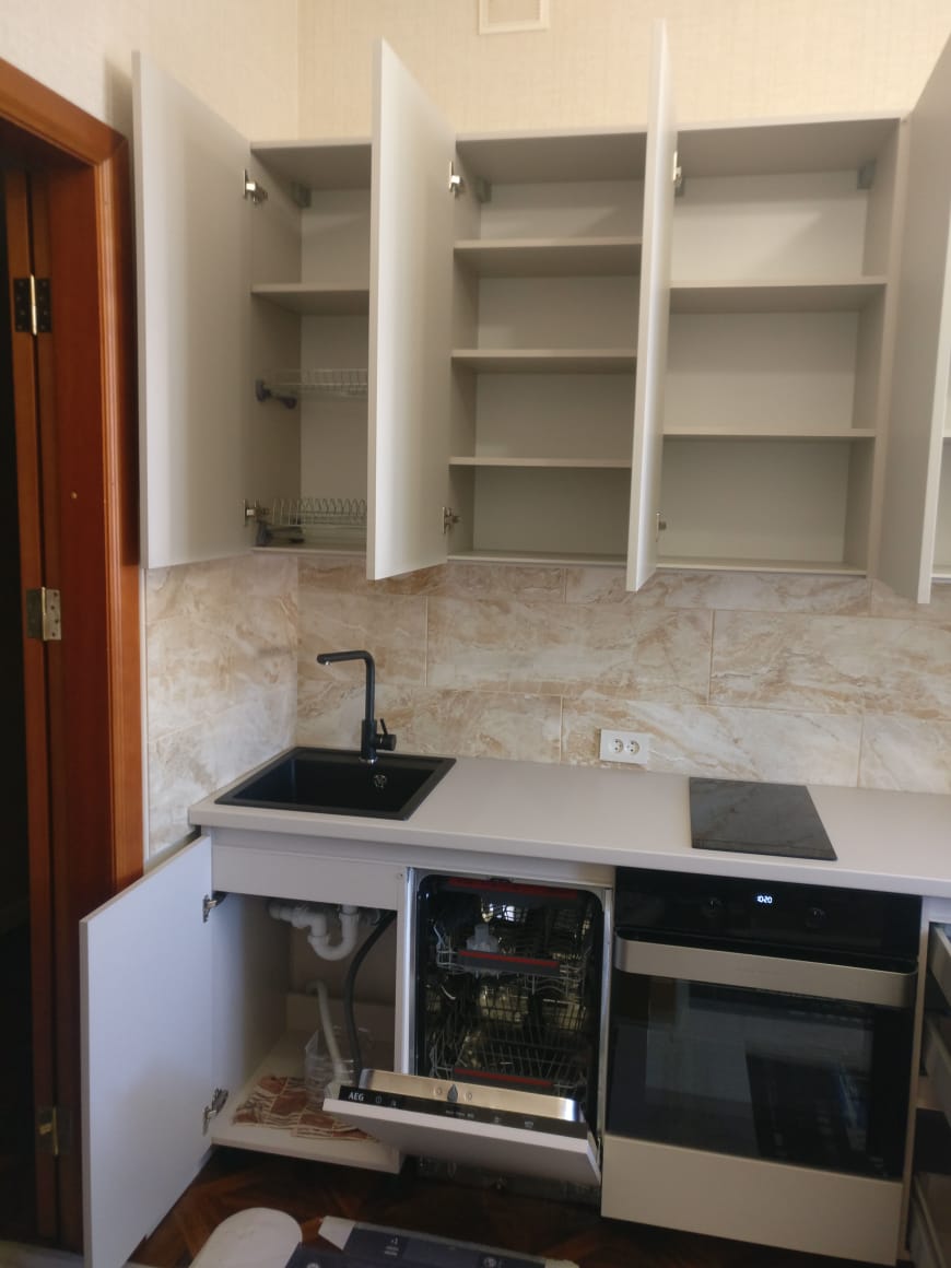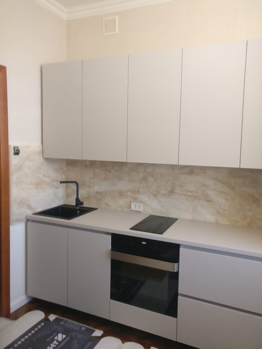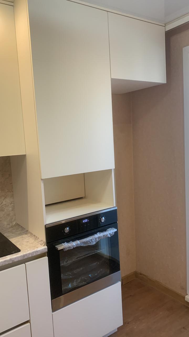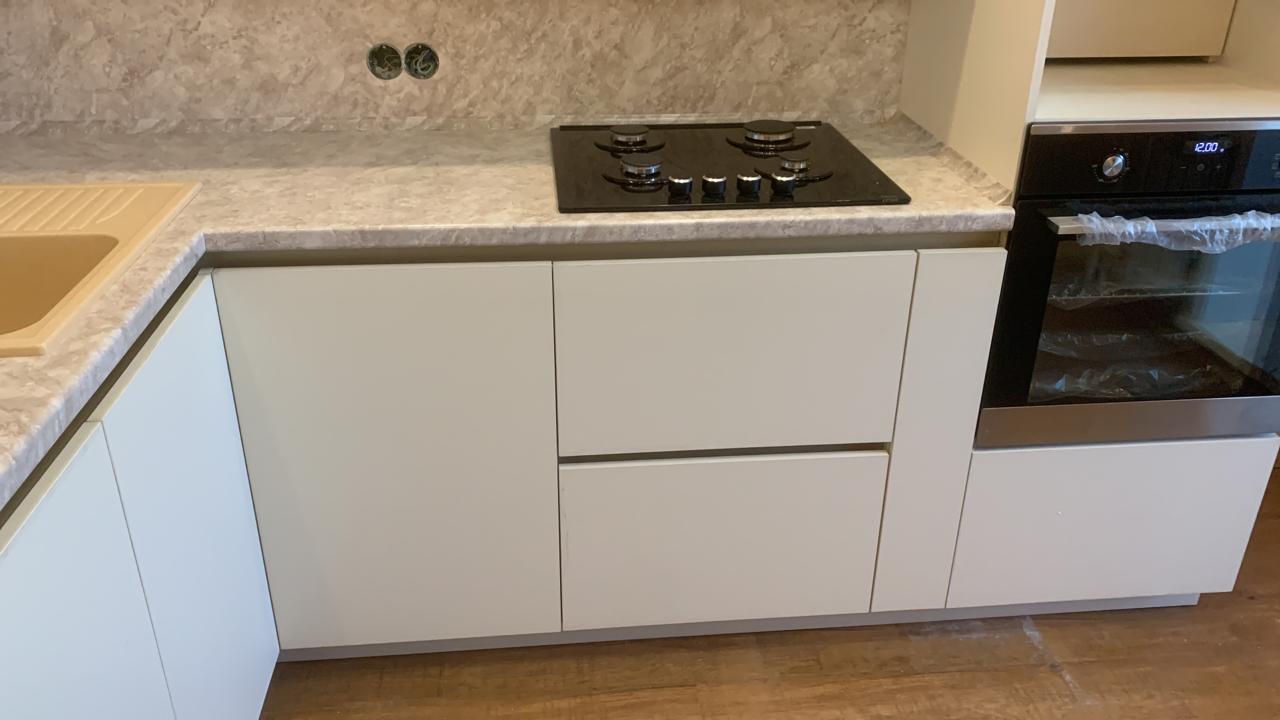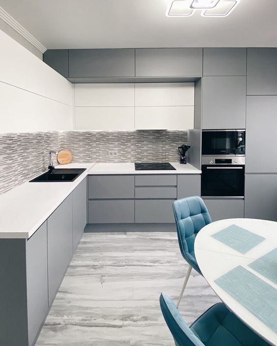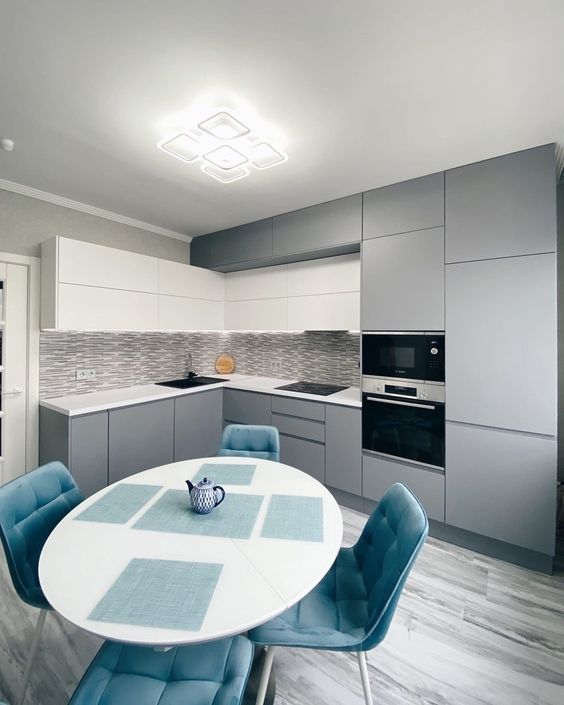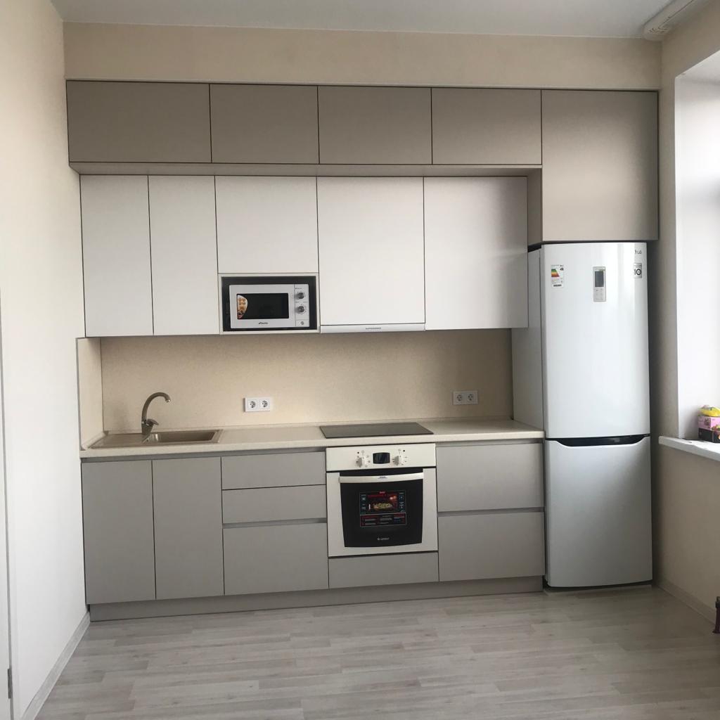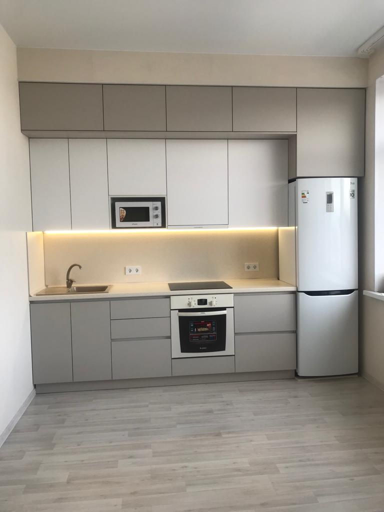 Современная кухня с белыми матовыми фасадами