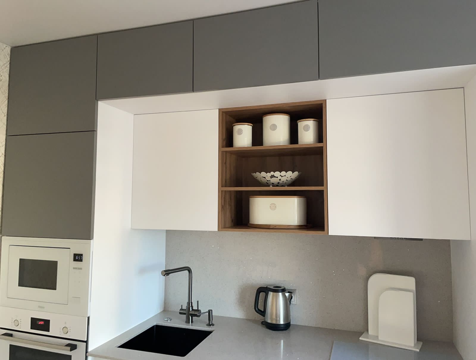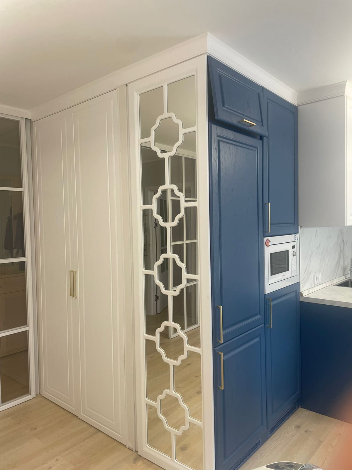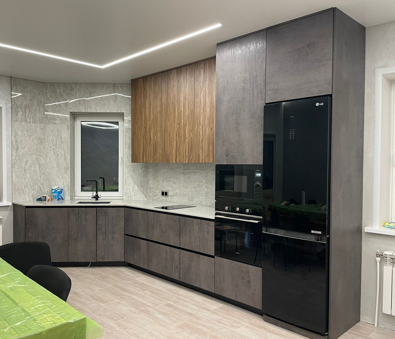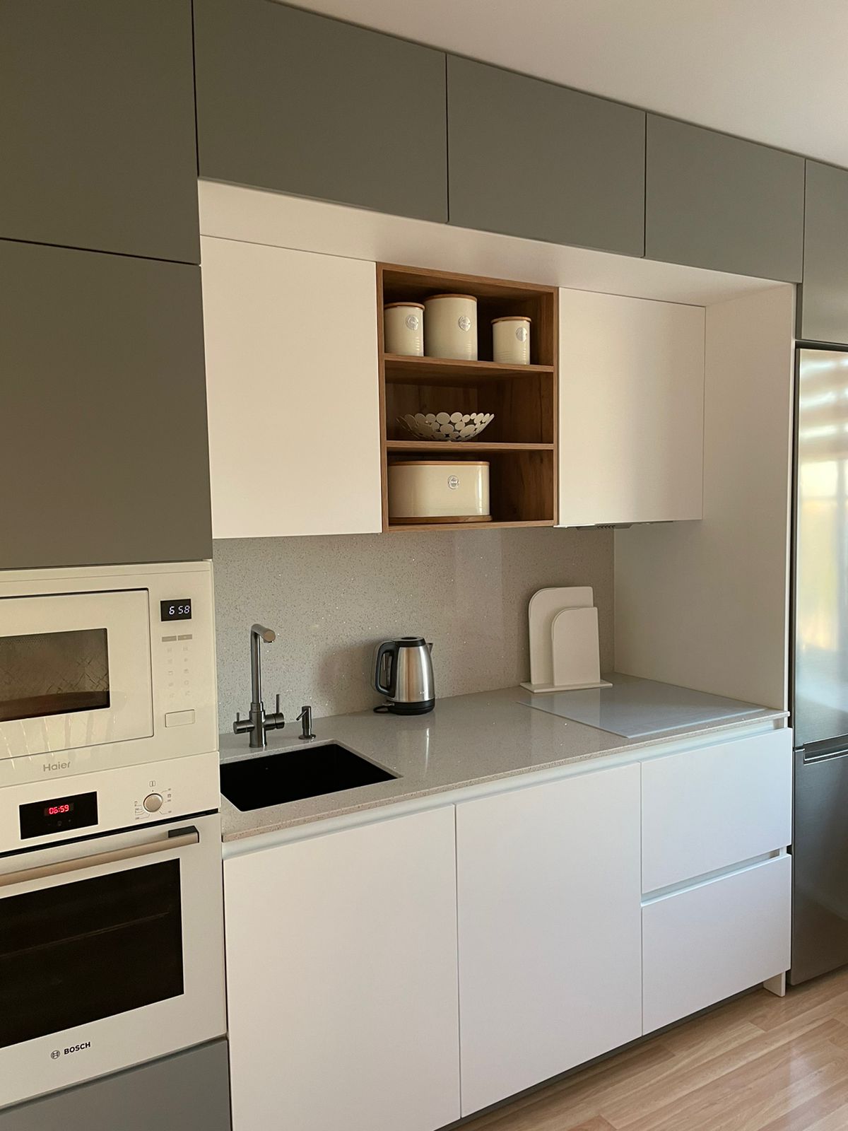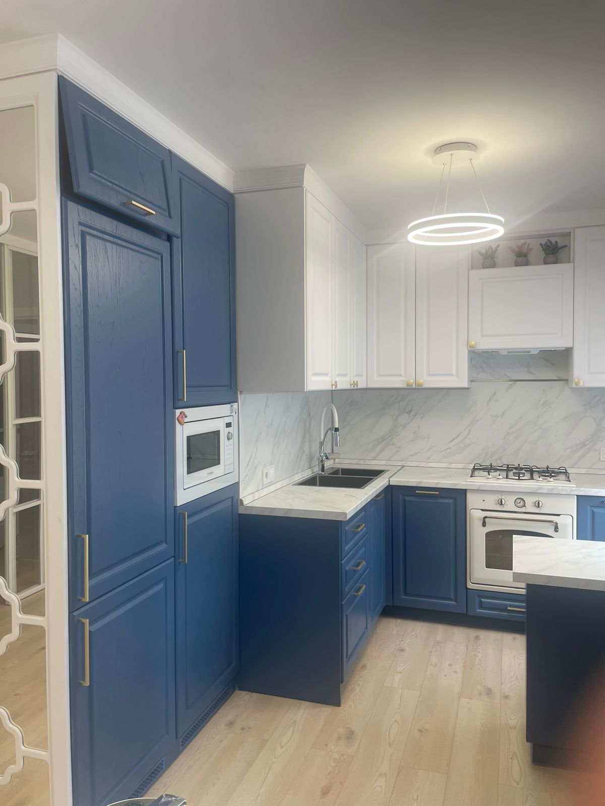 Современная кухня с белыми матовыми фасадами
